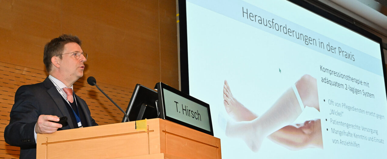 In short The Bauerfeind Company Symposium at the 2025 annual conference of the DGPL in Salzburg conveyed an important message regarding the treatment of venous leg ulcers (ulcus cruris venosum): this severe manifestation of venous disease can be treated successfully. However, specialist expertise is essential. How this knowledge is conveyed in the training of nursing professionals was illustrated by German Expert for Wound Treatment Kerstin Protz, based on a current study. Dr Tobias Hirsch (Vein Competence Centre, Halle/Saale) highlighted how restrictions imposed by statutory German health insurance and gaps in outpatient care unnecessarily complicate UCV treatment. When outpatient care reaches its limits, inpatient treatment often remains the only option. Prof. Dr Birgit Kahle (University Hospital Schleswig-Holstein) presented several illustrative case examples.